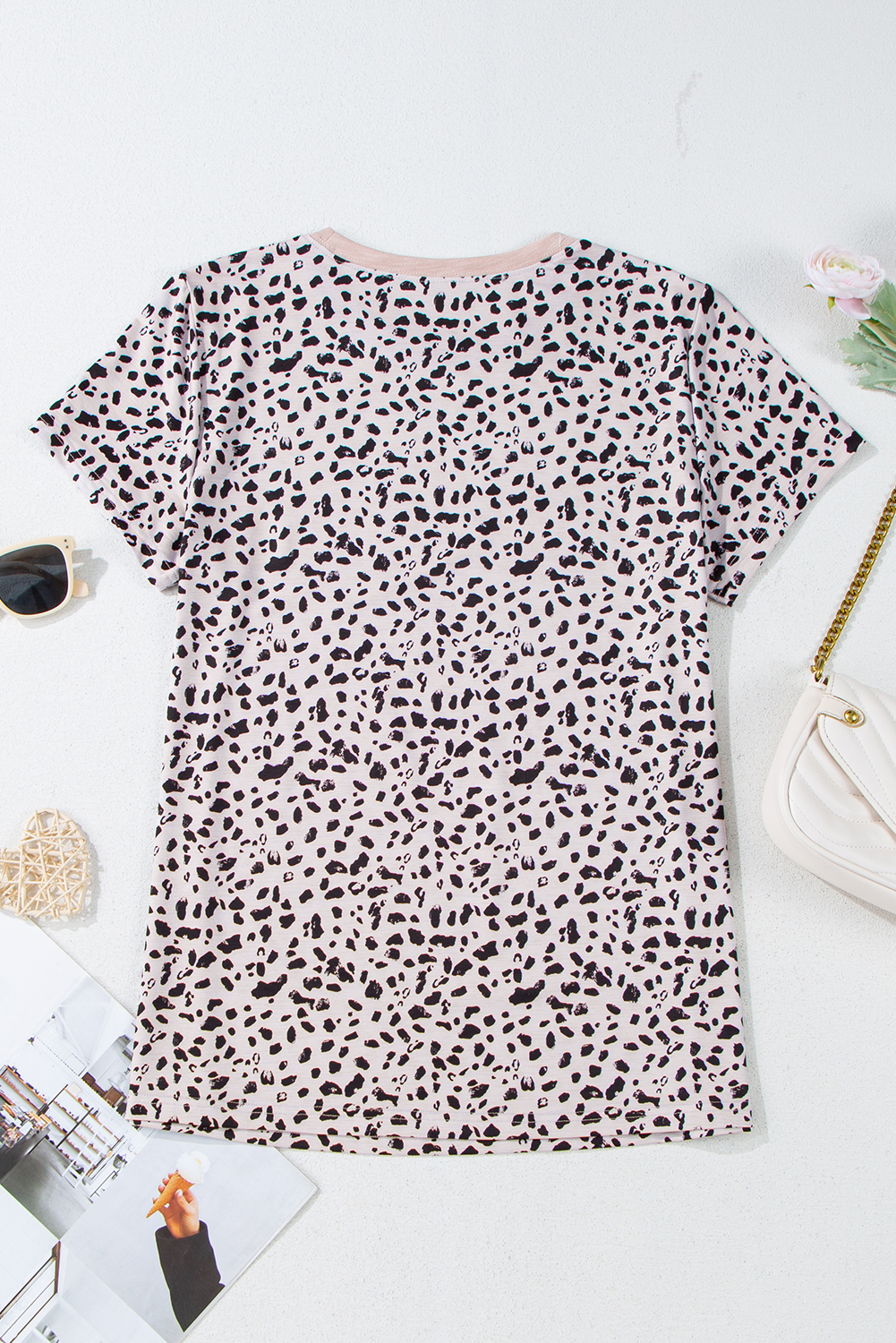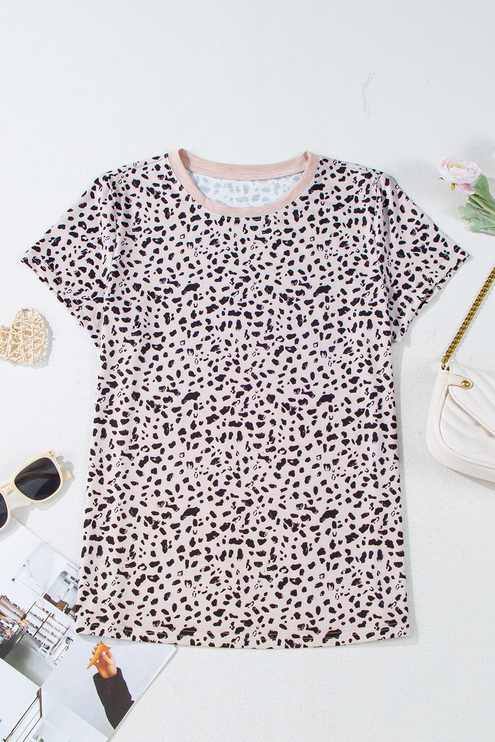 Apricot Cheetah Print O-neck Short Sleeve T Shirt