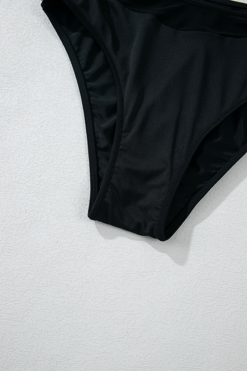 Be the first to review “Black Sheer Mesh Edged Halter V Neck Push Up Bikini”