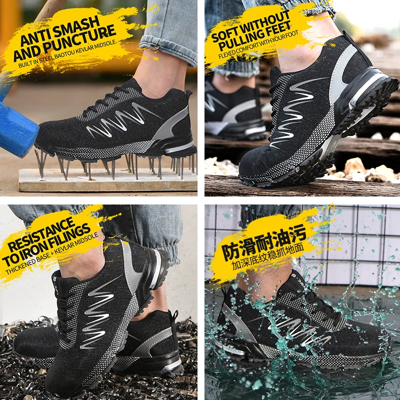 Steel Toe Construction Work Shoes Fashion Men Women Ultralight Mesh Industial Safety shoes